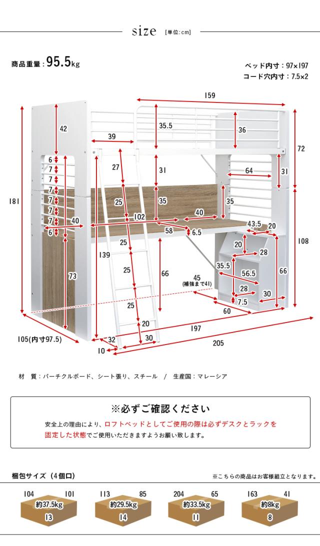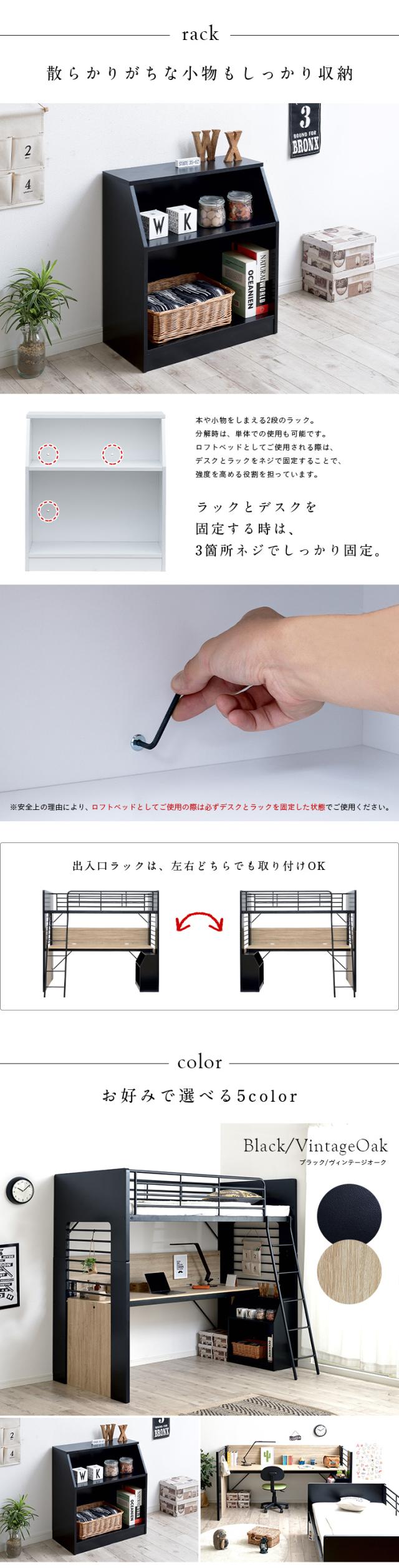 ※安全上の理由により、ロフトベッドとしてご使用の際は必ずデスクとラックを固定した状態でご使用ください。