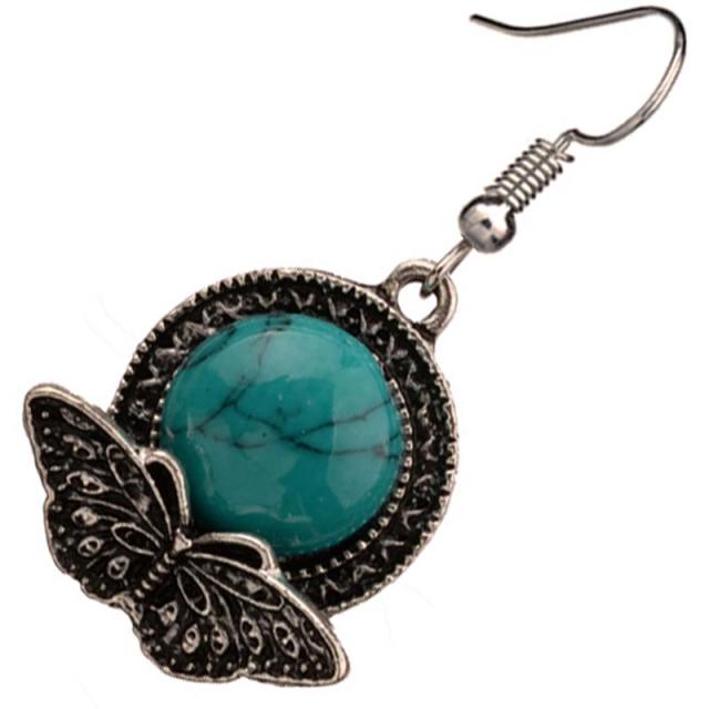 ラウンドバタフライターコイズステンレスピアス/1個販売 片耳用 サージカルステンレス316L トルコ石 メンズ レディース 揺れる フックピアス 天然石 チャーム 20G 20ゲージ チョウ 蝶 丸い 可愛い プレゼント 人気 女子 青色 ブルー 水色 彼女 丸型 ボヘミアン ボタニカル