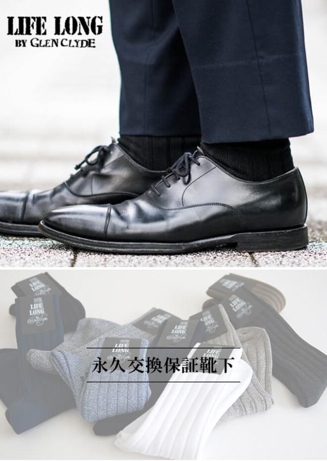 LIFE LONG BY GLEN CLYDE ライフロング グレンクライド クルー丈靴下 永久交換保証ソックス メンズ 男性用 プレゼント ギフト ビジネス 学生 学校 スクールソックス