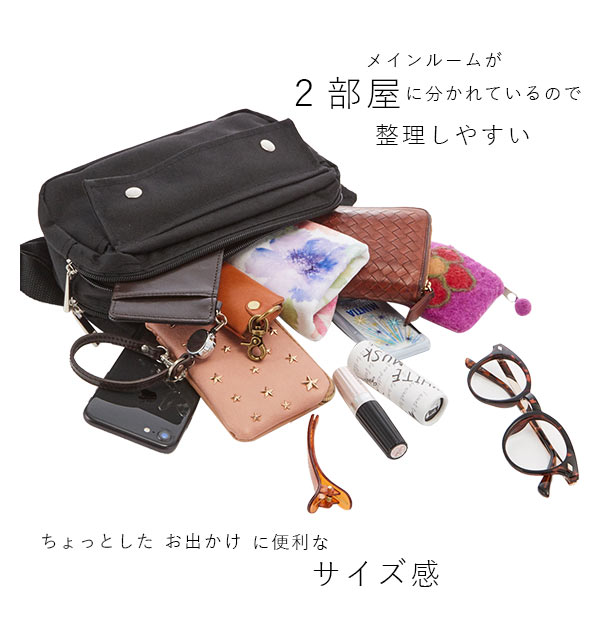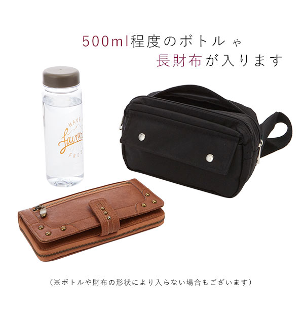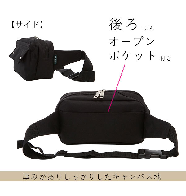 | 商品説明 | ポリエステルキャンバス生地がおしゃれ!当店でもかねてより人気のウエストポーチがよりアップグレードして新登場! ポリエステル素材でありながら光沢感はなく、手触りのよいコットンバッグのようなマットな質感が魅力です。しかも、コットンキャンバス素材よりも汚れにくく、軽くて丈夫なのも嬉しいポイント!厚みもしっかりしており、紫外線や雨などの色落ちに強い素材です。 2ルームに分かれたメイン収納は、横幅が従来品より1.5センチアップ!フロント側のメインルームには長財布を横にしてちょうど入るほか、背面側メインルームには500mlのペットボトルもジャストサイズで収めることができます。内部にはオープンポケットもついて、小物を整理するのに便利です。 さらに、本体前面にはスマートフォンやICカードを入れるのに便利な、マジックテープ式のかぶせ付きオープンポケット付き。背面にもスマートフォンや文庫本を横向きにしてすっぽりと入るサイズのオープンポケットがあり、小ぶりな見た目よりもバッチリ収納できます。旅行やフェス、ちょっとしたお出かけにぴったりのポーチです。 |