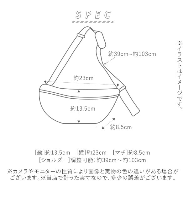 | サイズ | [縦]約13.5cm [横]約23cm [マチ]約8.5cm [ショルダー]調節可能:約39〜103cm ※サイズは当店平置き実寸サイズです。実際の商品とは多少の誤差が生じる場合がございます。あらかじめご了承ください。 |