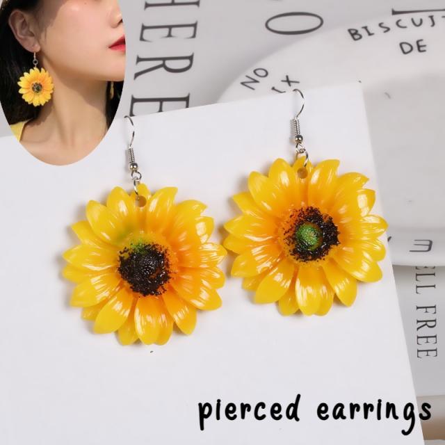 大振りのひまわりが耳元を華やかに飾るレディース用ピアスです。