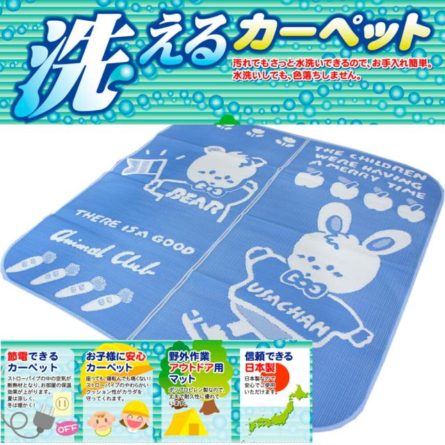 176x176cm 国産洗えるPPレジャーラグ(い草調)「うさぎ:ブルー」 野外イベントに!保育施設に!子供部屋に!