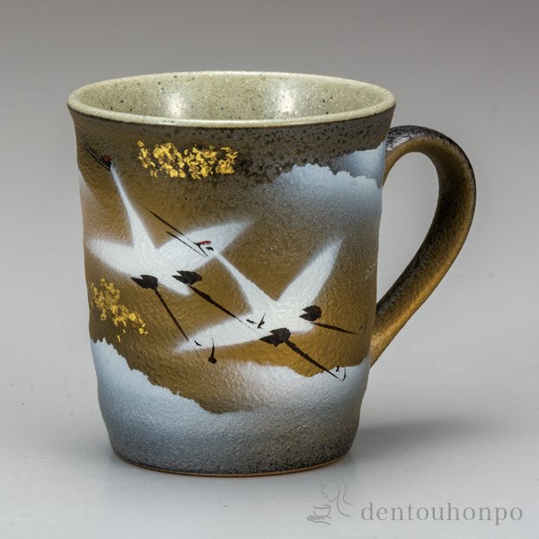 九谷焼 マグカップ 金箔群鶴 ( 退職祝い 定年 プレゼント デザイン マグ オリジナル タンブラー 九谷焼 結婚 出産 内祝い 引き出物 )