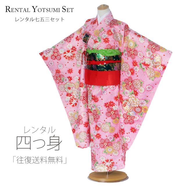 レンタル 四つ身 着物 花ひめ ブランド 七五三 7歳 貸衣装 ピンク 花柄