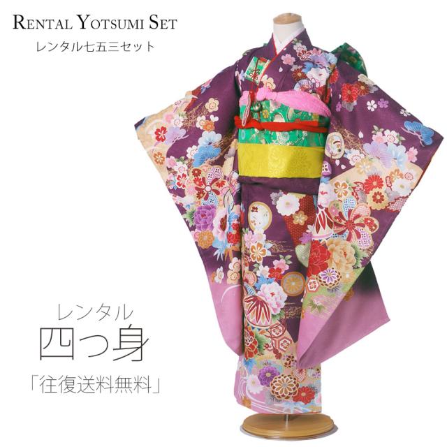 レンタル 四つ身 着物 花ひめ ブランド 七五三 7歳 貸衣装 紫 絵羽柄 鞠 梅