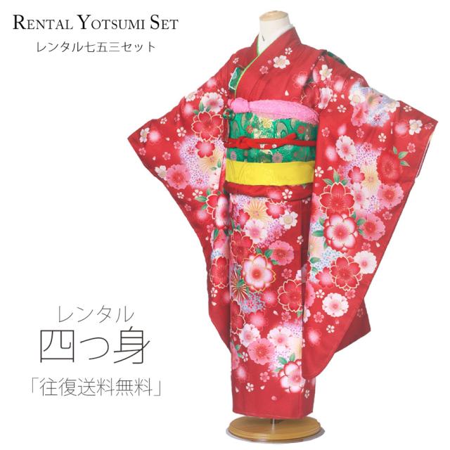 レンタル 四つ身 着物 花ひめ ブランド 七五三 7歳 貸衣装 赤 絵羽柄 桜 お参り【7歳 貸衣装 七歳 女の子】
