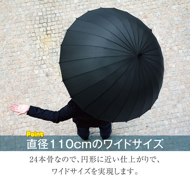 傘 かさ 24本骨傘 メンズ レディース 110cm 黒 ブラック かわいい おしゃれ 大きい 丈夫 kasa-06