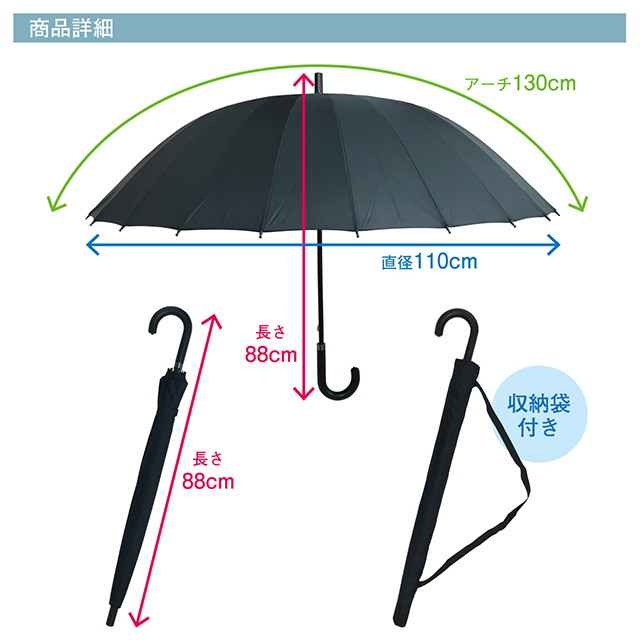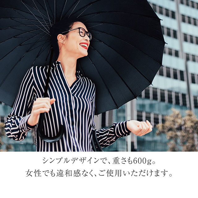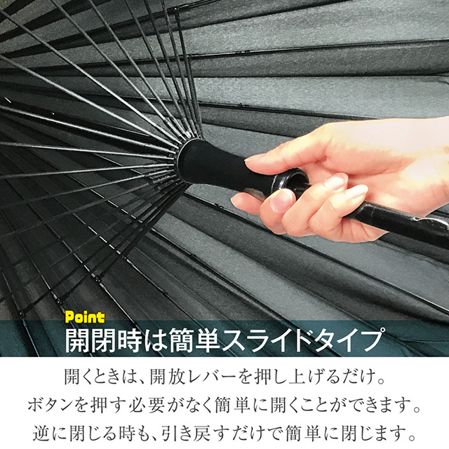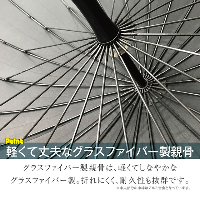 24本の骨で丈夫な作りになっており、強風にも耐えやすい傘です。