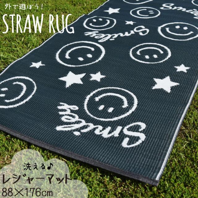 レジャー シート ラグ 1畳 スマイリー柄レジャーマット 約88×176cm 水洗いOK 洗える ウォッシャブル PPカーペット PP ござ PPラグ 長方形 軽量 軽い アウトドア 上敷き 行楽 お花見 運動会 ピクニック 日本製 かわいい 可愛い