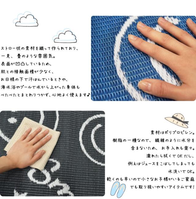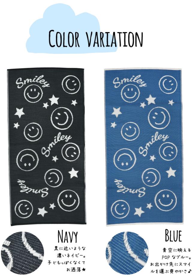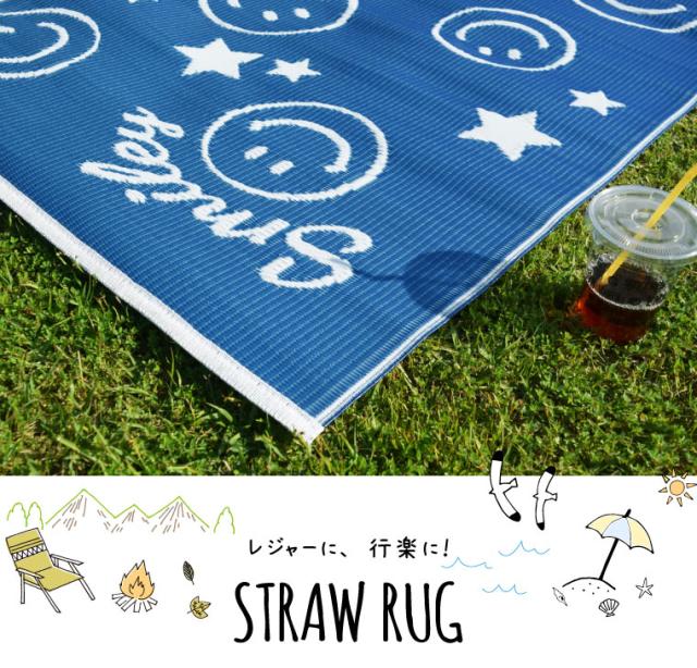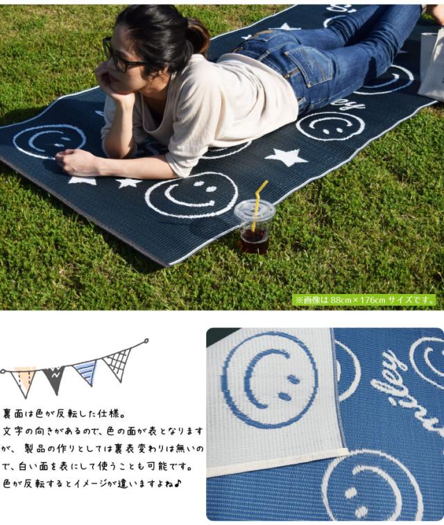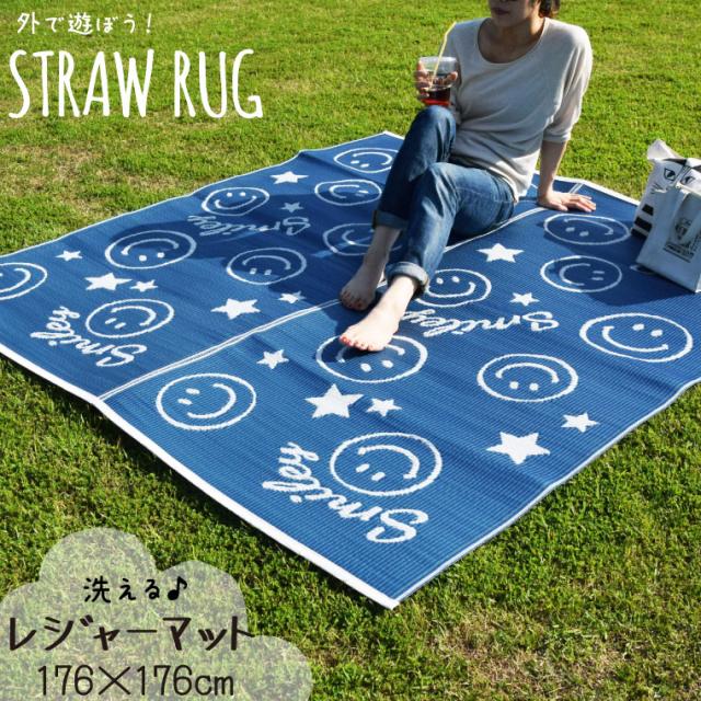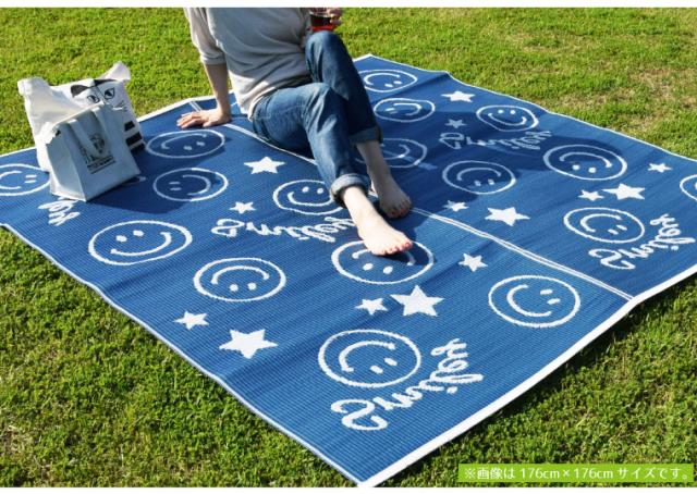 レジャー シート ラグ 在宅勤務 2畳 スマイリー柄レジャーマット 約176×176cm 水洗いOK 洗える ウォッシャブル PPカーペット PP ござ PPラグ 軽量 軽い アウトドア 上敷き 行楽 お花見 運動会 ピクニック 日本製 かわいい 可愛い