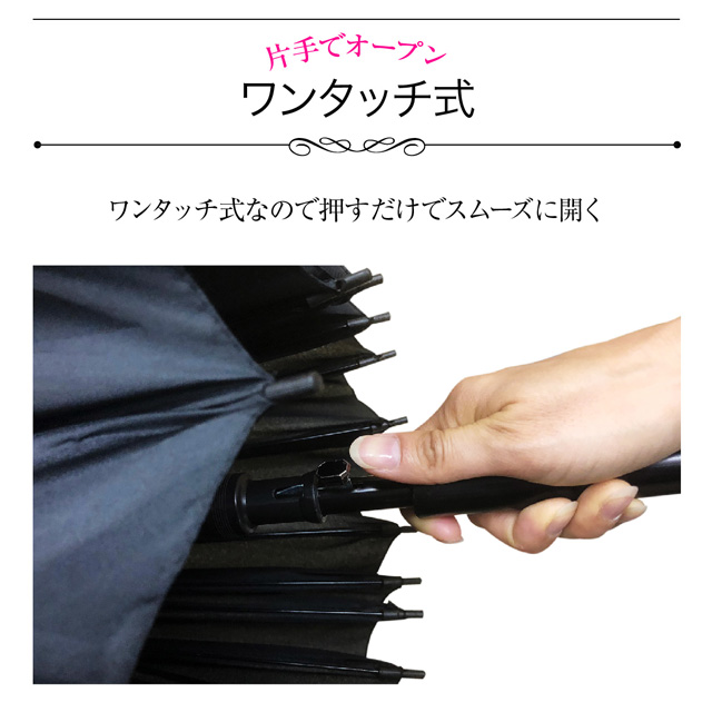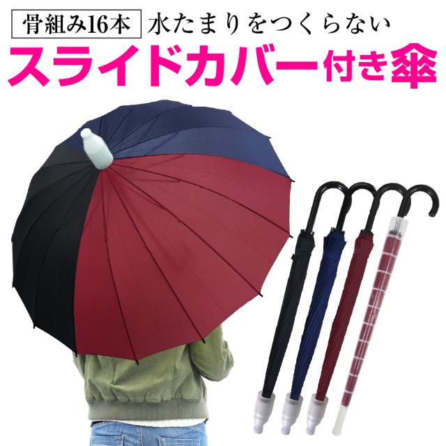 傘 かさ スライドカバー 16本骨傘 ワンタッチ メンズ レディース 94cm 黒 ブラック かわいい おしゃれ 大きい 丈夫 kasa-07
