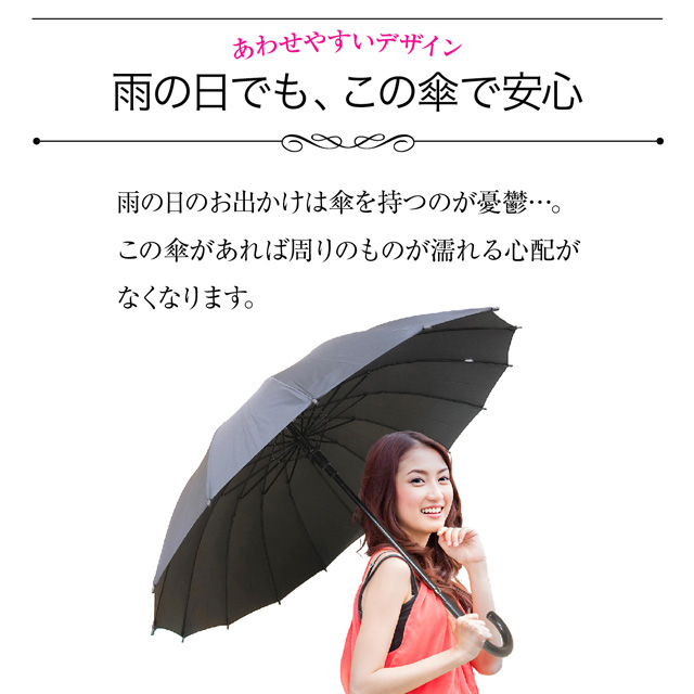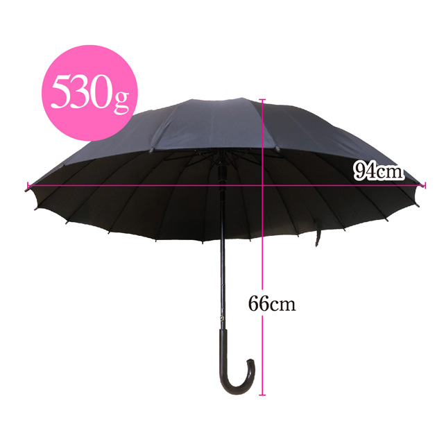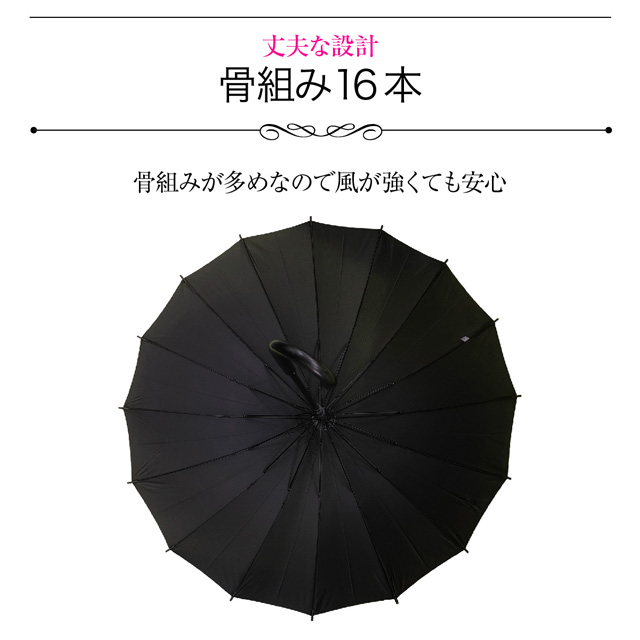 16本の骨で丈夫な作りになっており、強風にも耐えやすい傘です。
