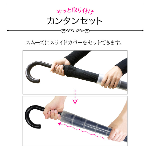 スライドカバーを上げると傘を丸ごとカバーできるので