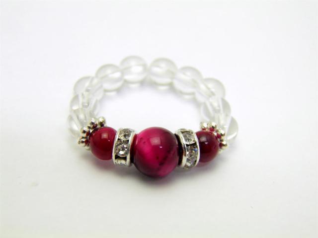 ピンクタイガーアイ 6mm 水晶 シルバー リング(指輪)