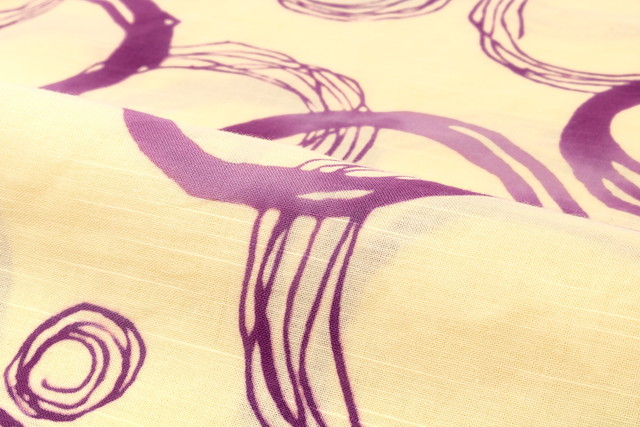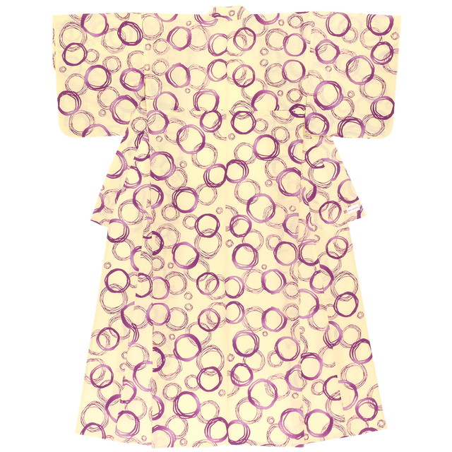 注染(ちゅうせん)の風合いを生かしてデザインされた手描き風のサークル模様が、大人の女性の浴衣姿を美しく上品に演出します。