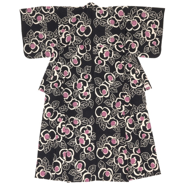 浴衣 レディース 単品 大人 レトロ 女性 そしてゆめ 黒 ブラック 椿 ツバキ 30代 40代 50代 綿 モダン 夏 注染 日本製 仕立て上がり 【フリーサイズ】【送料無料】
