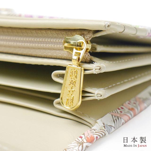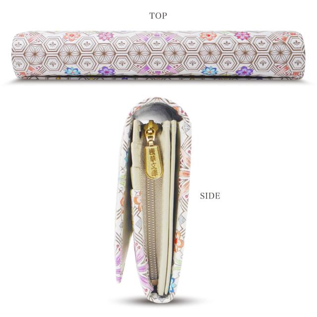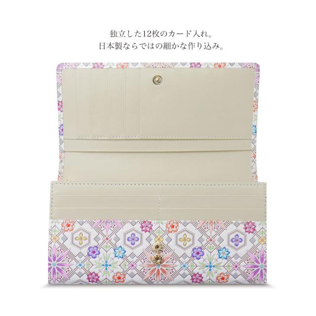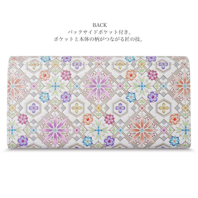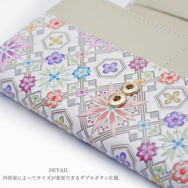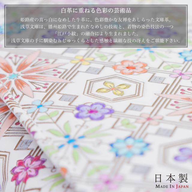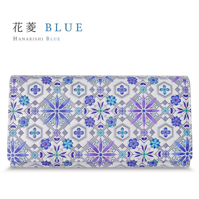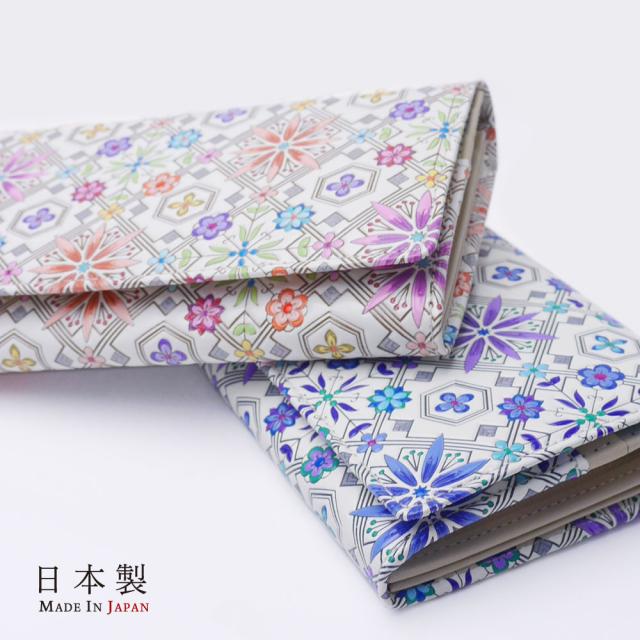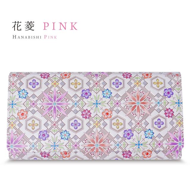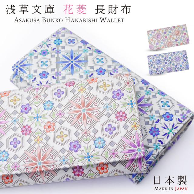 浅草文庫 花菱 日本製 かぶせ 長財布 選べる2色 ピンク ブルー 友禅染 財布 サイフ プレゼント 贈り物 浅草 文庫革 江戸小紋