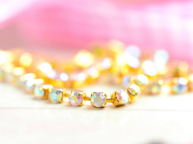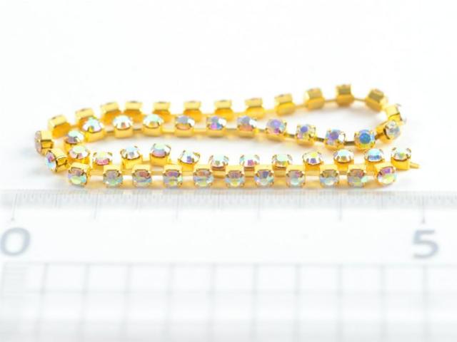 連爪 ガラスストーン(約2.3mm)約20cm ゴールドxクリスタルAB 連爪チェーン ダイヤレーン アクセサリーパーツ 手芸材料 レジン ネイル