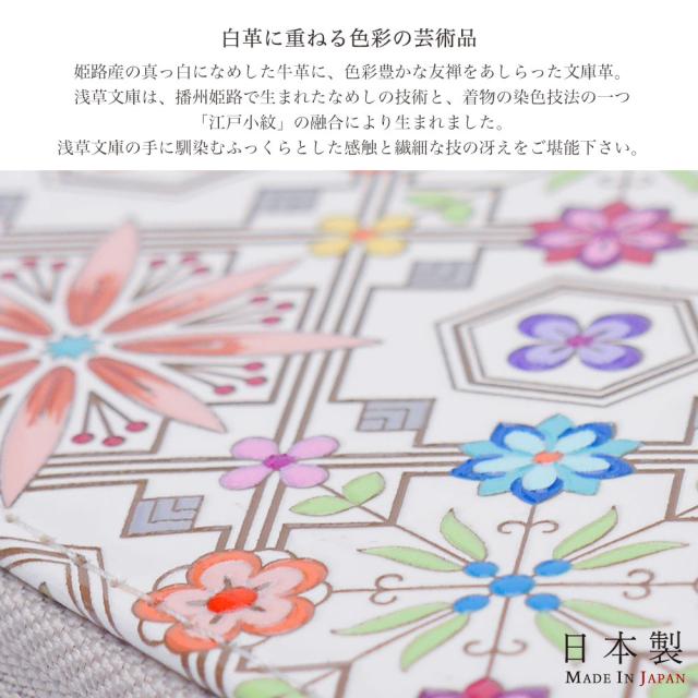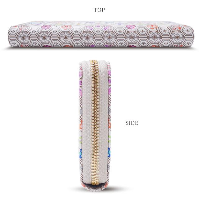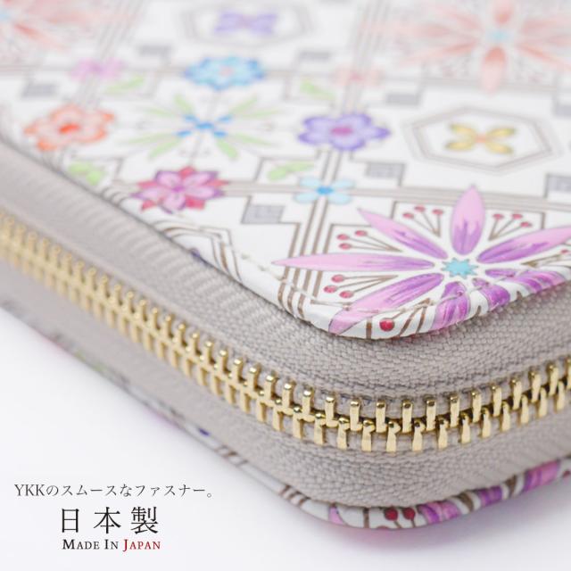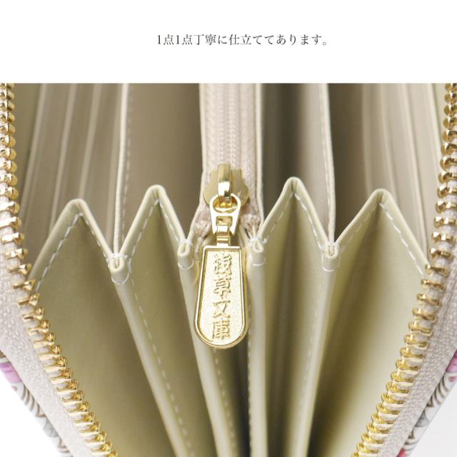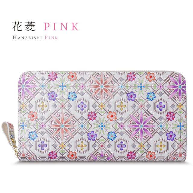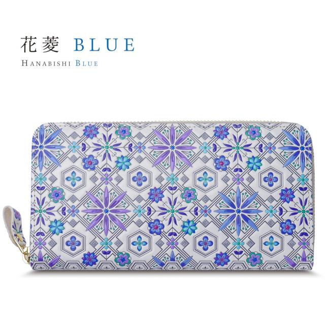 浅草文庫 花菱 日本製 ラウンド 長財布 選べる2色 ピンク ブルー 友禅染 財布 サイフ プレゼント 贈り物 浅草 文庫革 江戸小紋