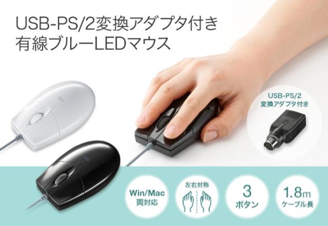 ■商品名:マウス 有線ブルーLEDマウス USB-PS/2変換アダプタ付き スタンダードな3ボタン