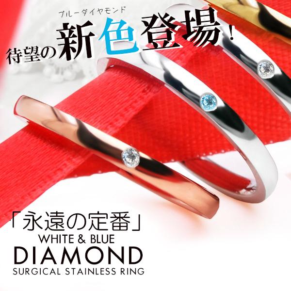 指輪 リング レディース 指輪 細身 ペアリングにダイヤ ダイヤモンド入り ブルーダイヤ サージカルステンレスリング プレゼントに♪選べる3色 7号 8号 9号 10号 11号 12号13号 14号 15号 ペア 細い 可愛い かわいい おしゃれ サージカル ステンレス 華奢 ファッションリング