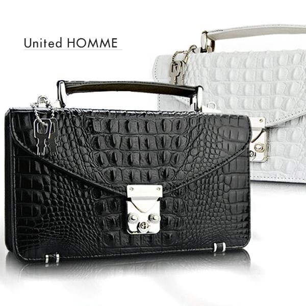 セカンドバッグ メンズ【送料無料】United HOMME -PRESIDENT- 牛革リアルクロコダイル型押しセカンドバック【メンズ、男性用、紳士用】【ユナイテッドオム】【かばん・bag・革鞄・カバン】【クロコダイル】2221 かっこいい カッコイイ オシャレ