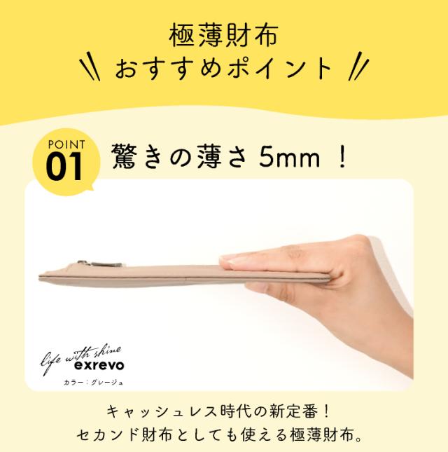 - 本当に場所を取らない使いやすいお財布です。強いていうならばカードもう2枚入れば…っていう感じくらいです。すごく気に入ってます
