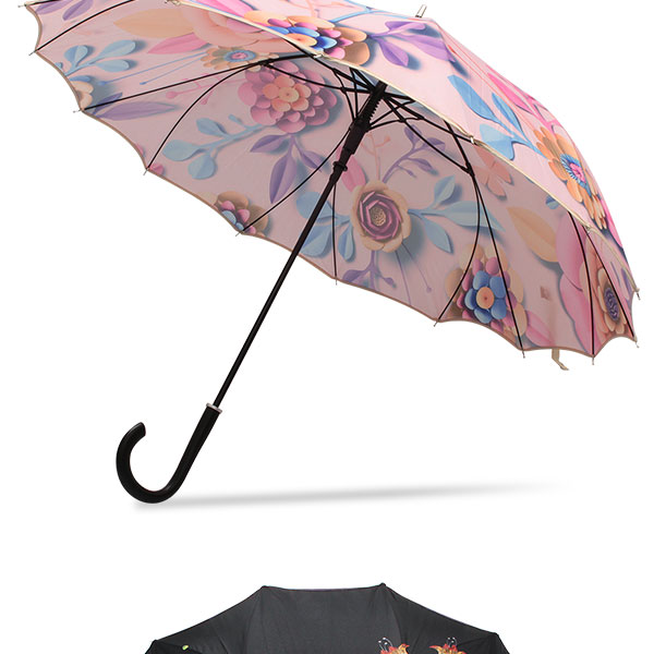 サンフラワーという骨組みを採用したオシャレ傘。その開いた姿はまるで、美しい桜の花が咲いたようなシルエットです。