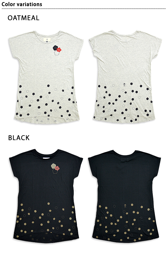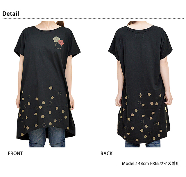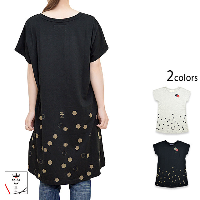 着た人、それを見た人が笑顔になれる、他にはないデザインを提供し続けている「喜人」さんから、「小紋のドルマンワンピース(KJ-91017)」のご紹介です。 お腹回り、腰回り、お尻回りをしっかりとカバーしてくれる、Tシャツ生地のゆったりドルマンワンピースが登場です! 梅と桜の小紋が可愛くちりばめられた、女性らしいデザイン。 首回りは丸く開いたクルーネックタイプで、顔回りをすっきりと見せてくれます。 生地は柔らかく薄手で、軽い着心地のラフィー天竺を採用。 | ||||||||