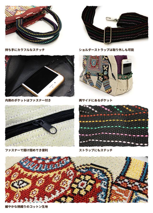 かばん 鞄 ショルダー!シュール象さん2WAYショルダーバッグアジアン ファッション エスニック アジアン雑貨 レディース 斜めがけ 一泊旅行 一泊二日