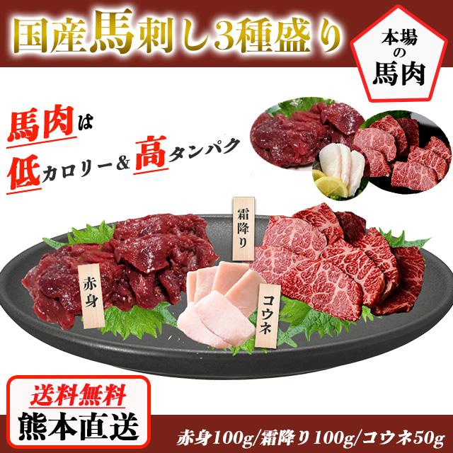 馬刺し 赤身 霜降り たてがみ 馬刺しセット 熊本 3種 国産 3種食べ比べセット 約5人前 250g 馬刺 馬肉 お中元 お歳暮 ギフト 贈り物 贈答 プレゼント おつまみ