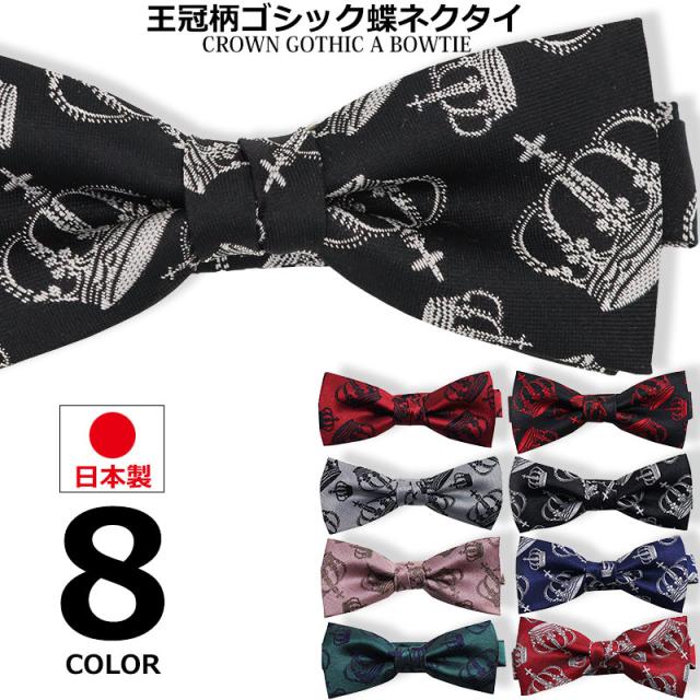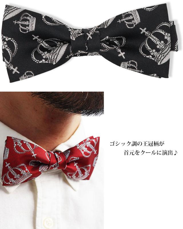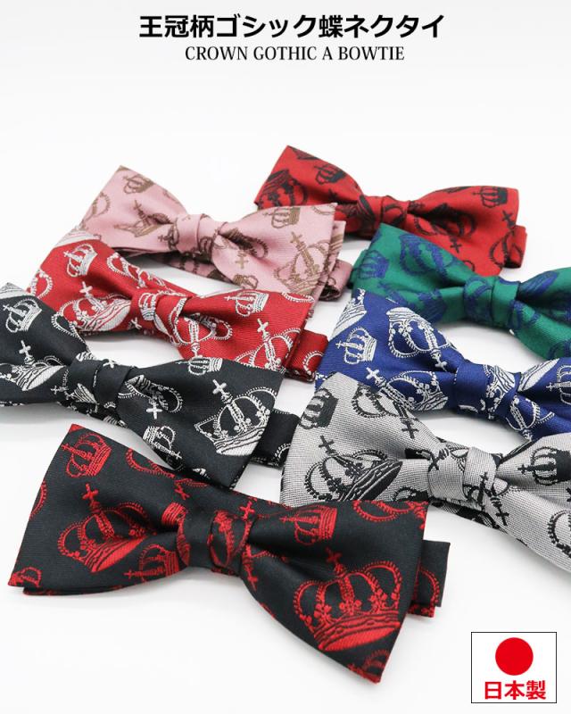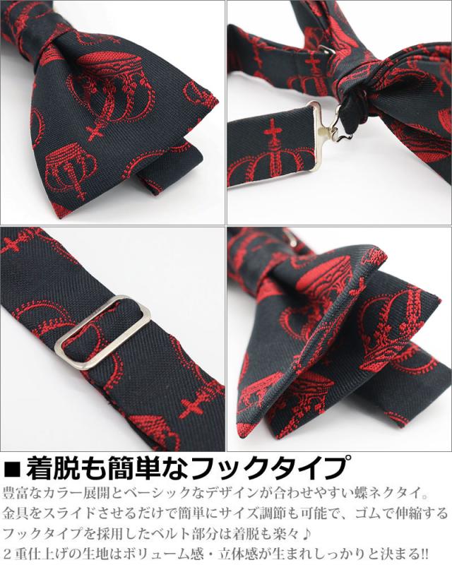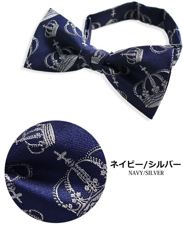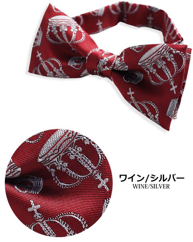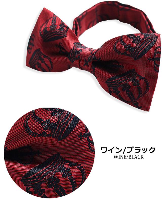 日本製 王冠柄 クラウン 蝶ネクタイ ボウタイ メンズ レディース 子供 キッズ 入園式 卒園式 入学式 卒業式 結婚式 ステージ衣装 発表会