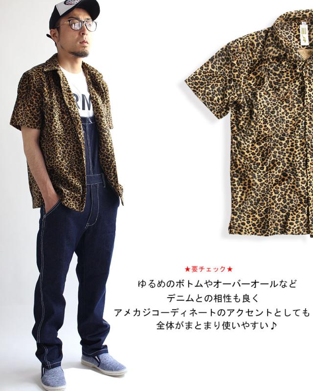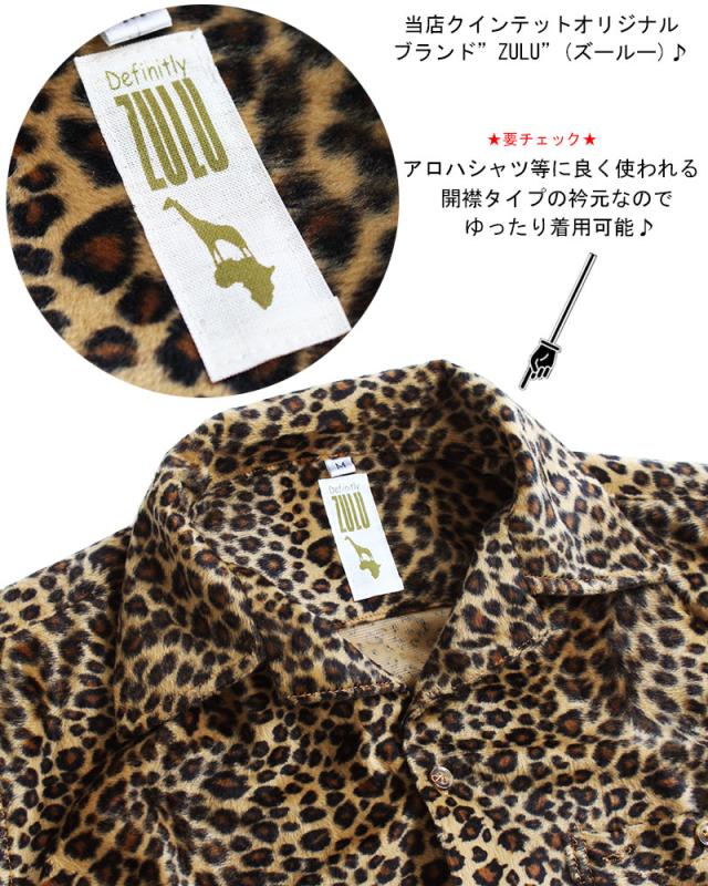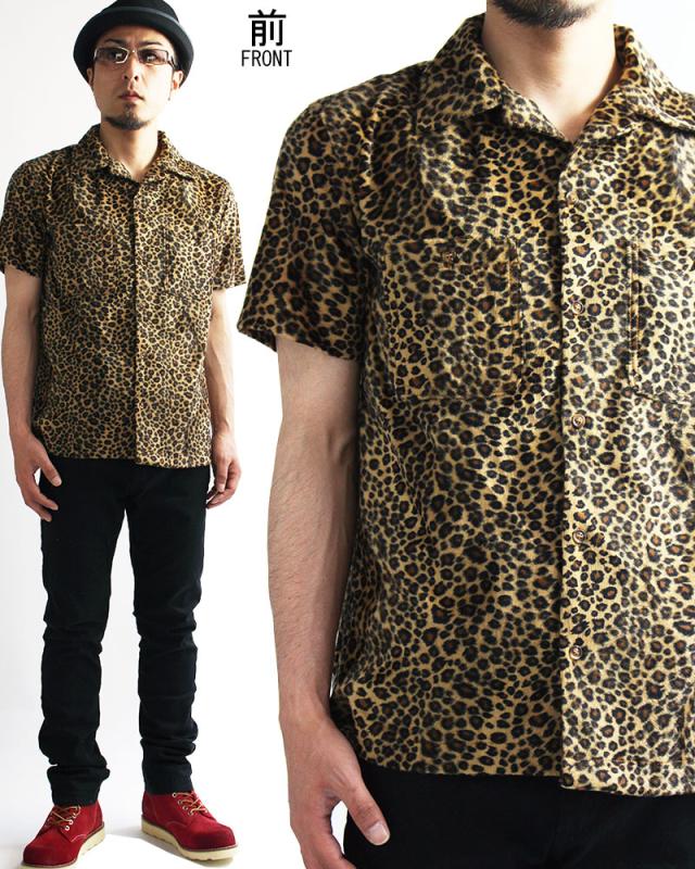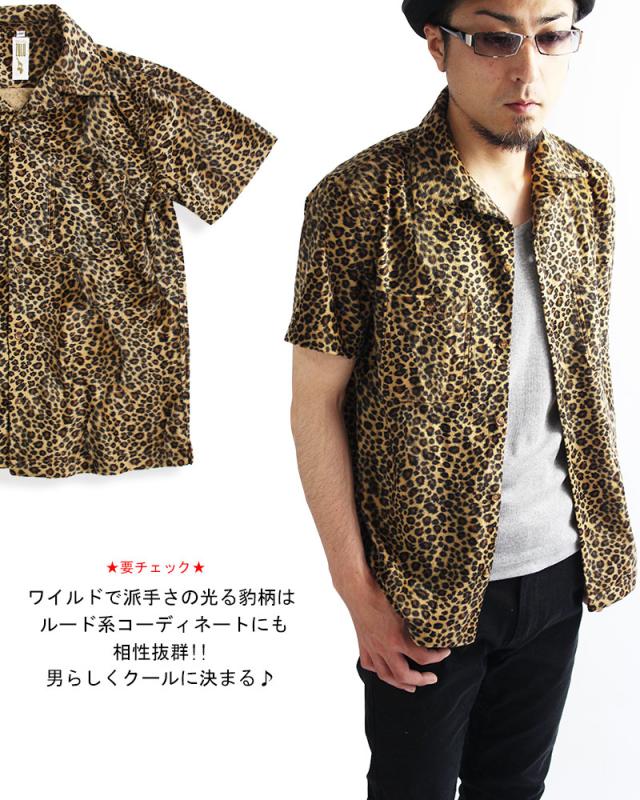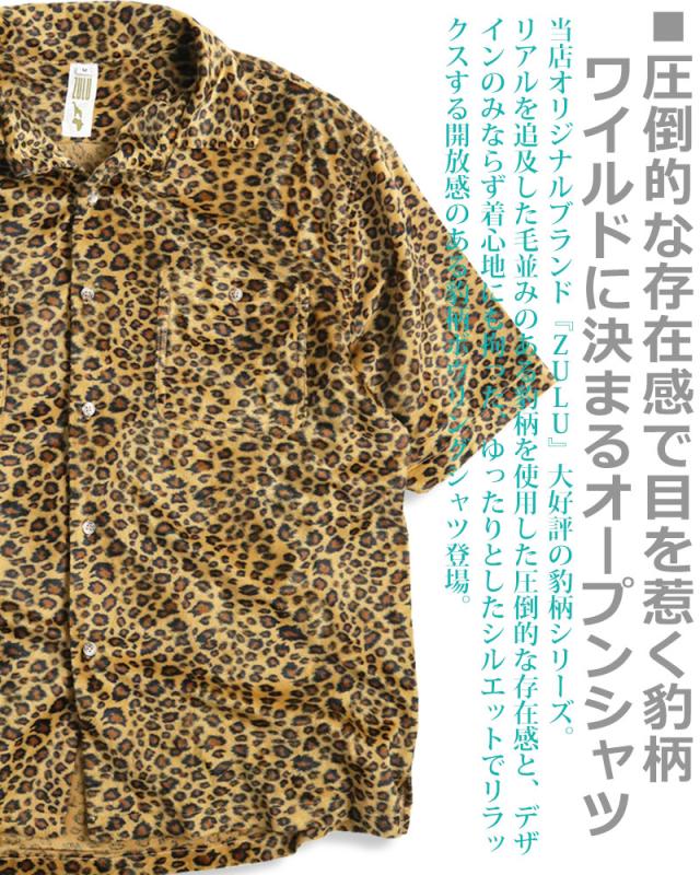 【ZULU】ROCK 豹柄 半袖シャツ ボウリングシャツ レオパード柄 ヒョウ柄 シャツ 開襟シャツ メンズ ロック 豹