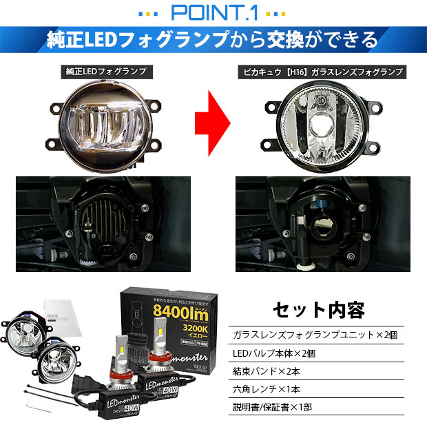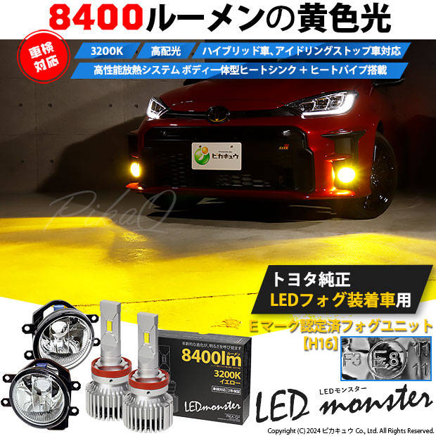 単 H16 led トヨタ車 純正 対応 LED MONSTER L8400 クリアガラスレンズ フォグランプキット 8400lm イエロー 3200K 36-D-1