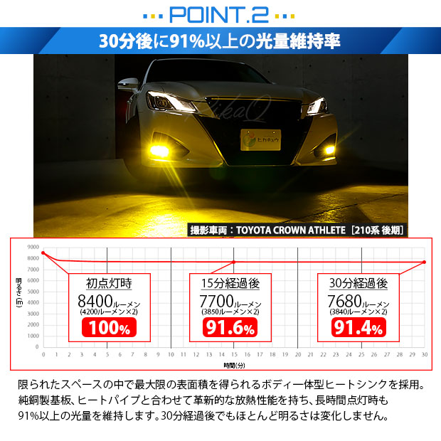 ※ルーメン値は、バルブ2個(車両一台分)の値を示しています。
