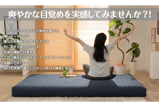 マットレス シングル 低反発 ポケットコイル入り キルティング ベッド用 睡眠 快眠 安眠 日本製 送料無料