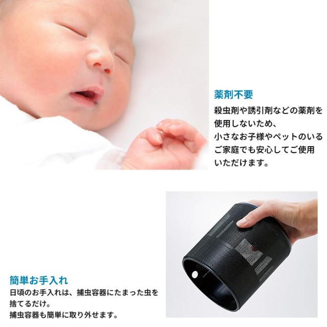 殺虫剤や誘引剤などの薬品を使用しないため、小さなお子様やペットのいるご家庭でも安心してご使用いただけます。