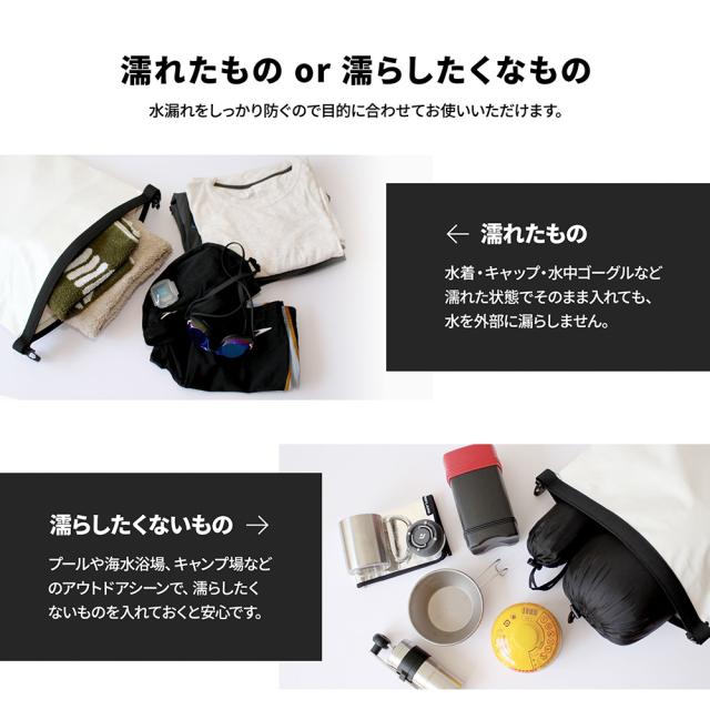 WATER PROOF DRY BAGはアウトドアやマリンスポーツ、トラベルなど使用するシチュエーションにより、手さげ、肩かけ、リュックなど、複数の使い方でご使用いただけます。