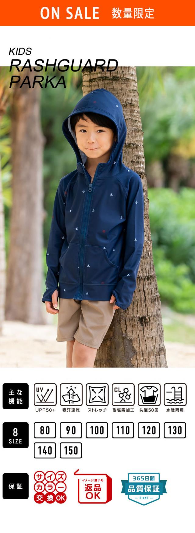 SALE キッズ パーカー 水着用 長袖 男の子 女の子 ジュニア UVパーカー ラッシュパーカー 日焼け対策