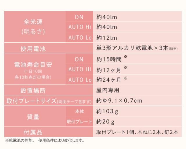 センサーが人の動きを感知して自動的に点灯する乾電池式LED室内センサーライトマルチタイプです。