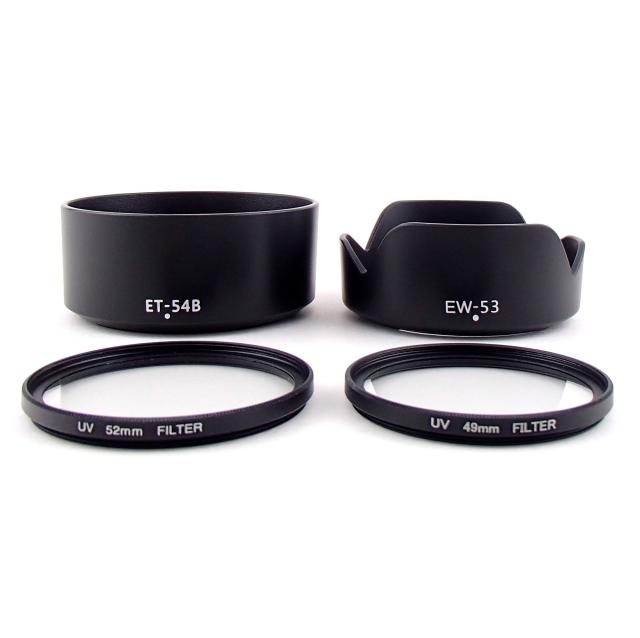 ・CanonキャノンレンズフードET-54B&EW-53互換品&52mm、49mmレンズ保護フィルターセット(Canon純正品ではございません)