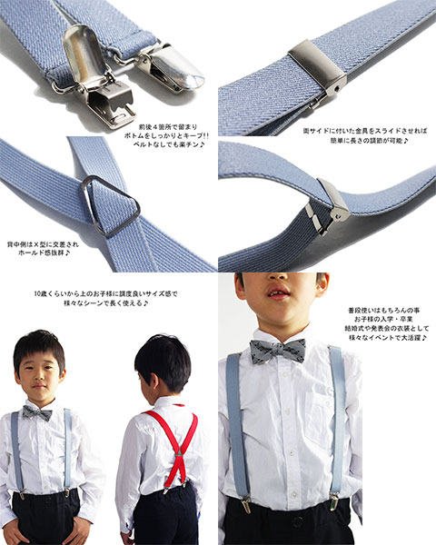 ジュニアサイズ 子供用 サスペンダー 日本製 21mm幅 入園式 卒園式 入学式 卒業式 結婚式 発表会 ステージ衣装 キッズ 子供 X型 フォーマル 吊りバンド ズボン吊り ブレイシーズ
