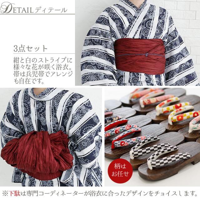 粋百花ストライプ 3点セット(兵児帯)【yu044】。20代・30代・40代・50代浴衣・レディース・セット・帯・レトロ・2点セット・3点セット・レトロモダン・向日葵・単品・大正ロマン・安い・子供・こども・人気・お得・uピン・親子・yukata・紺・青・白・涼しい・かごバッグ・かご巾着・兵児帯・かわいい・かんざし・キュート・クラシカル・クラシック・小さいサイズ・3Lや4L・・即日発送・送料無料・花火大会・夏祭り・2way・Ladies・あさがお・あじさい・インスタ・コスプレ・ジュニア・ストライプ・チェック・チェック柄・ツバメ・ドット・トンボ・トンボ玉 ・ネコ・パジャマ・ひまわり・ペア ・やばね・衣装・牡丹