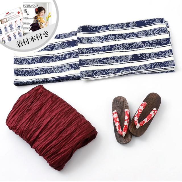 ◆4点セット(浴衣/着付け本/作り帯/下駄)