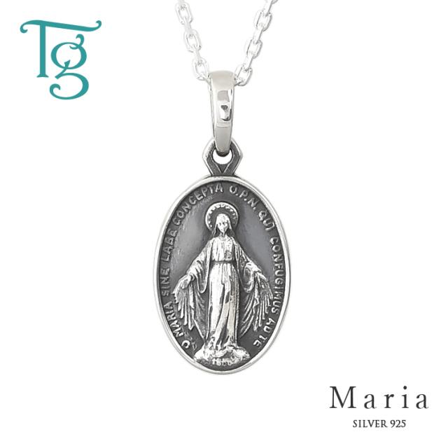 ペアネックレス 2本セット シルバー 聖母マリア 不思議のメダイ シンプル おしゃれ Silver 925 ペアペンダント 1.5mm幅カットあずきチェーン付き (bj452_pair)