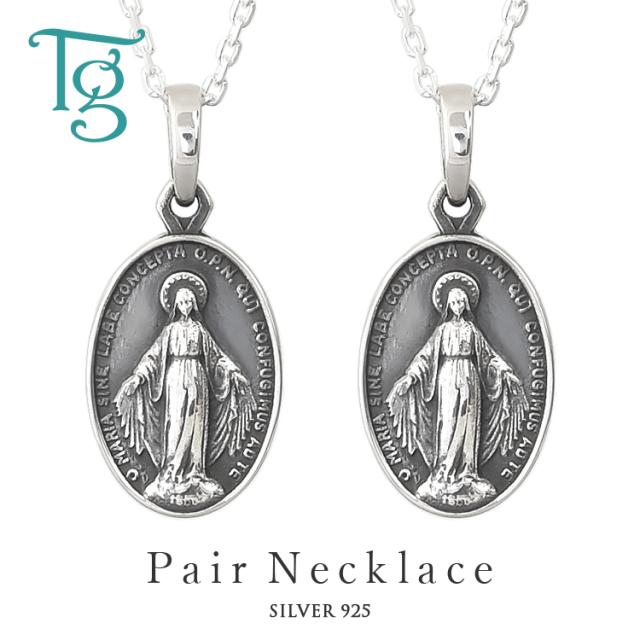 聖母マリア[不思議のメダイ]シルバーペアネックレス。