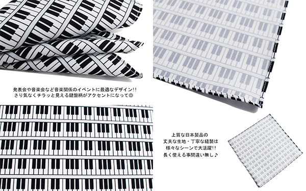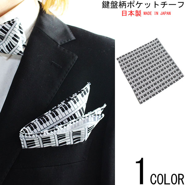 ピアノ鍵盤柄 ポケットチーフ ハンカチーフ フォーマル 日本製 ピアノ柄 連弾 ステージ衣装 発表会 音楽会