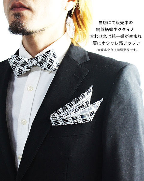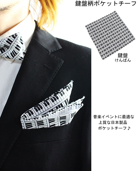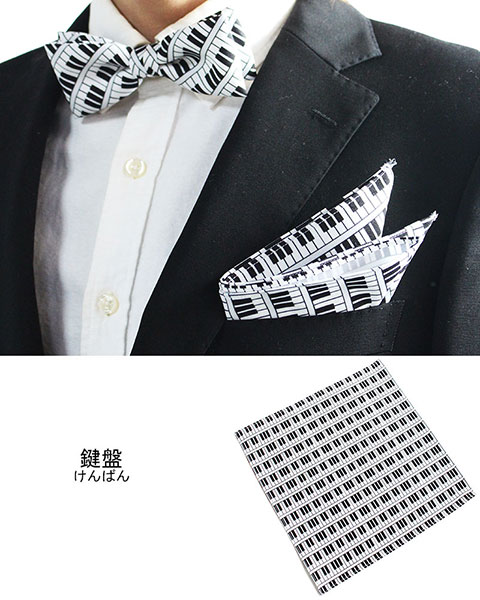 『ピアノ』『鍵盤』『音楽』『楽器』『ポケットチーフ』『ハンカチーフ』『チーフ』『ハンカチ』『ビジカジ』『入園式』『入学式』『卒業式』『卒園式』『結婚式』『お受験』『ステージ衣装』『発表会』『ピアノ』『カジュアル蝶ネクタイ』『おしゃれ』『フォーマル』