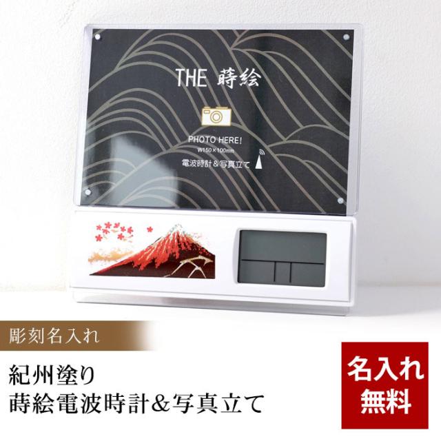 電波時計 彫刻名入れ 紀州塗り 蒔絵電波時計&写真立て 名入れ無料 フォトフレーム 和室 おしゃれ 木目 インテリア 日本製 置き時計 ギフト プレゼント 贈り物 記念品 父の日 実用的 敬老の日 80代 祖父 祖母 孫から 2024 送料無料